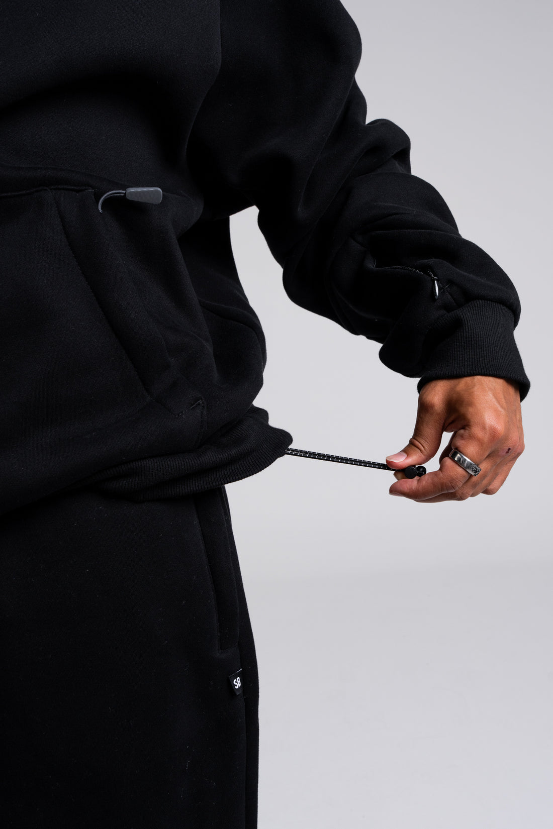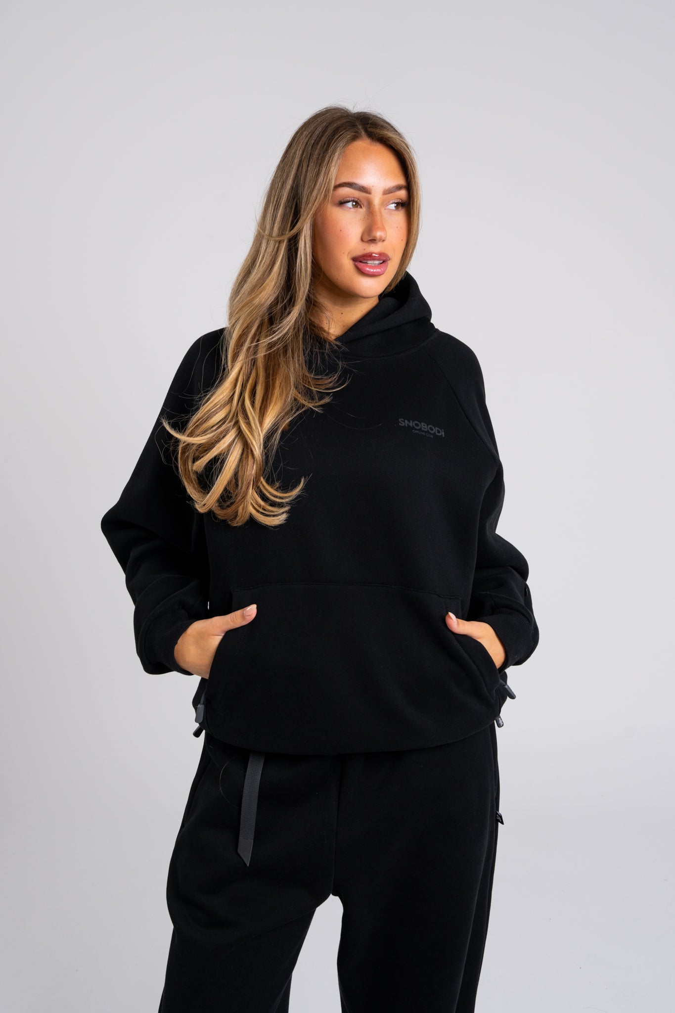 Function stays front and centre. Hand gaiters lock in warmth, the adjustable drawstring hem lets you dial the fit, and secure zip pockets including a discreet lift pass pocket keep essentials in place. The raglan sleeve construction creates a more relaxed, natural feel through the shoulders while maintaining that premium Snobodi structure.